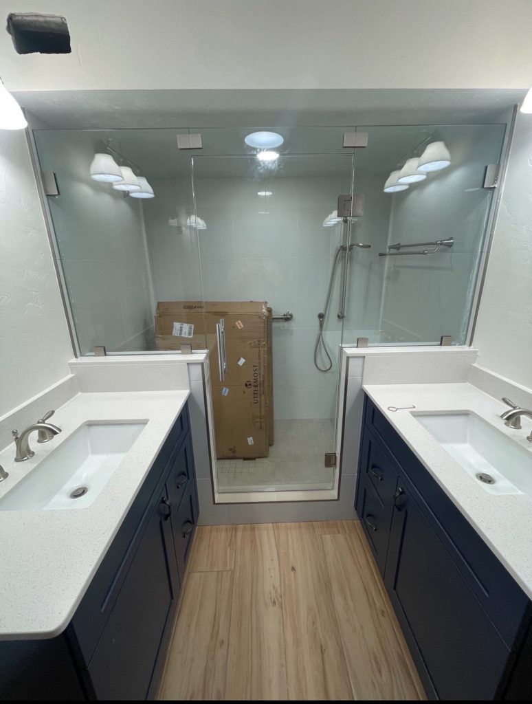 Explore our gallery to see the stunning results of our work. From elegant frameless shower doors to beautifully remodeled kitchens and bathrooms, we bring your vision to life. Browse for inspiration and contact us today to discuss your project!